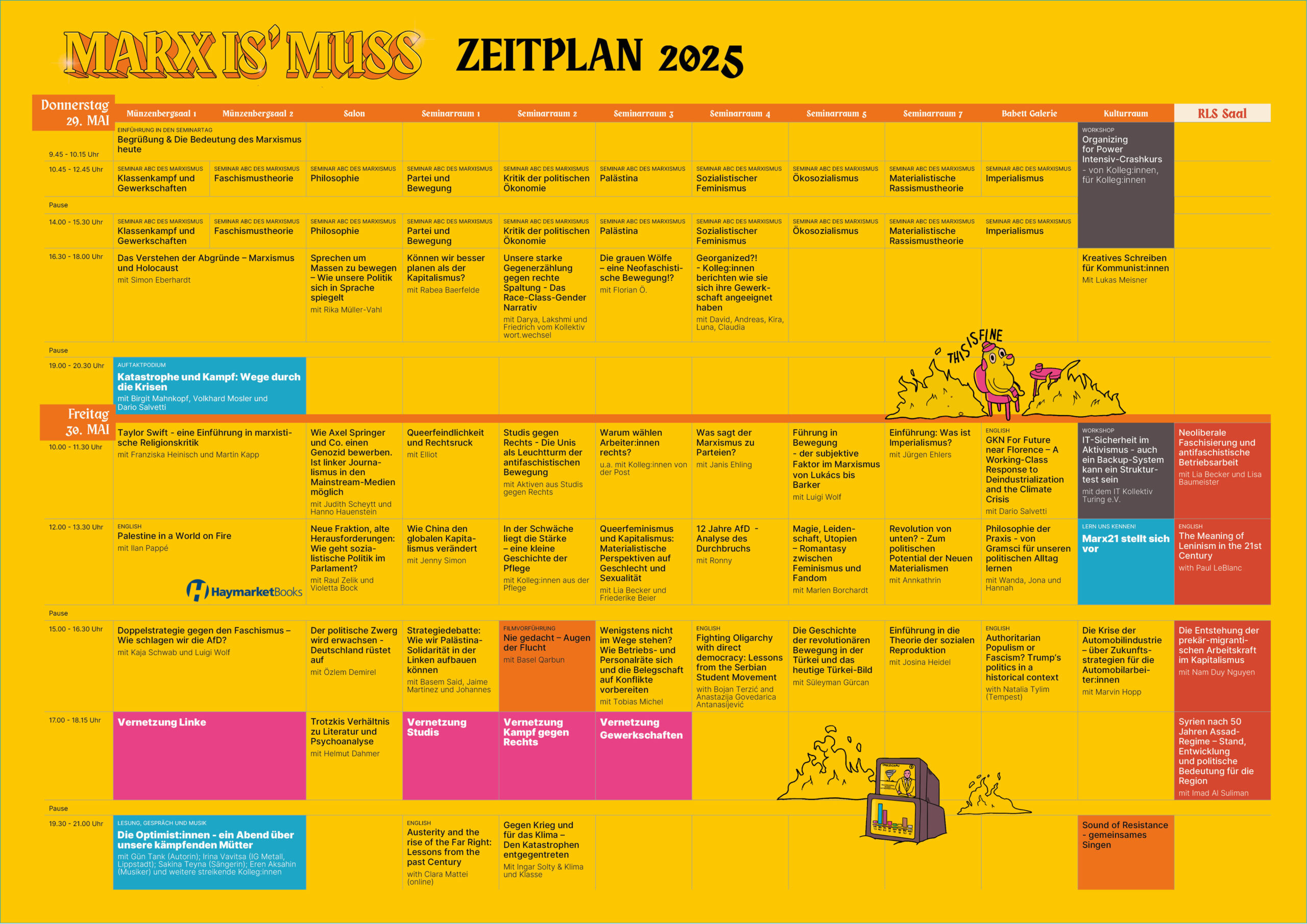 Wir bieten am 30. und 31. Mai von eine kostenlose Kinderbetreuung für verschiedene Altersgruppen ab 3 Jahren an. Bitte teile uns an mim@marx21.de mit, ob du diese in Anspruch nehmen möchtest.